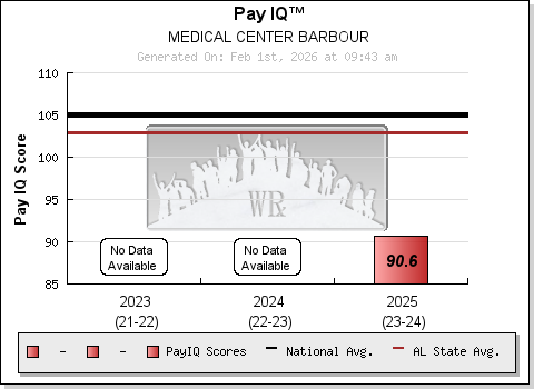 The Pay IQ ® is the measure of labor efficiency of a hospital. It is calculated using an algorithm that incorporates financial data from publicly available sources. The algorithm is designed to evaluate labor utilization in a manner that accounts for differences in reimbursement and cost of living for each distinct institution. Based upon the results derived from labor spending, the algorithm determines the "Labor intelligence" level of each hospital and assigns their personal Pay IQ ®. Pay IQ's range from 80 (challenged) to 140 (genius) and are a valid indicator of the effective use of labor spending.