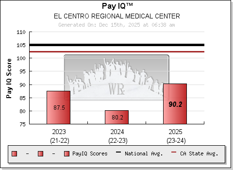 The Pay IQ ® is the measure of labor efficiency of a hospital. It is calculated using an algorithm that incorporates financial data from publicly available sources. The algorithm is designed to evaluate labor utilization in a manner that accounts for differences in reimbursement and cost of living for each distinct institution. Based upon the results derived from labor spending, the algorithm determines the "Labor intelligence" level of each hospital and assigns their personal Pay IQ ®. Pay IQ's range from 80 (challenged) to 140 (genius) and are a valid indicator of the effective use of labor spending.