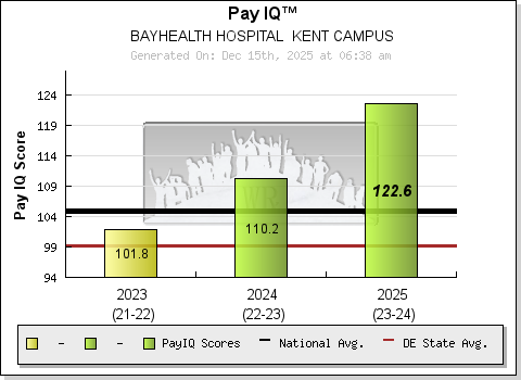 The Pay IQ ® is the measure of labor efficiency of a hospital. It is calculated using an algorithm that incorporates financial data from publicly available sources. The algorithm is designed to evaluate labor utilization in a manner that accounts for differences in reimbursement and cost of living for each distinct institution. Based upon the results derived from labor spending, the algorithm determines the "Labor intelligence" level of each hospital and assigns their personal Pay IQ ®. Pay IQ's range from 80 (challenged) to 140 (genius) and are a valid indicator of the effective use of labor spending.