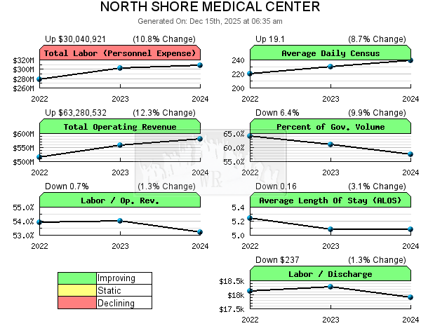 Workforce Prescriptions produces updated Operational Effectiveness Scorecards quarterly on 2940 acute facilities in the United States. The purpose of these reports is to provide an objective analysis of the impacts of operations on each individual institution.