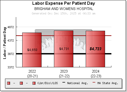 Changes in acuity are nearly always reflected in both "Length of Stay" (sicker patients tend to stay longer) and "Labor per Discharge" (sicker patients require more labor per day). Therefore, dividing the "Labor per Discharge" by the "Length of Stay", produces a scalable measure that truly captures an organization's change in labor utilization (against volumes) over time. The measure is "automatically" acuity adjusted and tells a far more detailed story than any other single risk factor (See section above).