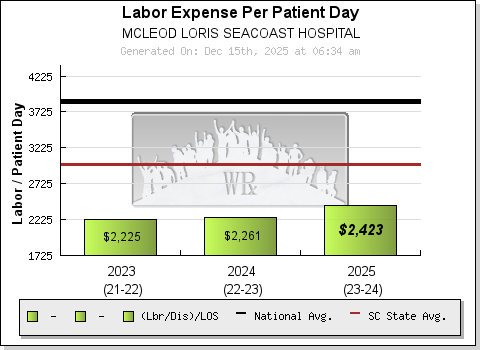 Changes in acuity are nearly always reflected in both "Length of Stay" (sicker patients tend to stay longer) and "Labor per Discharge" (sicker patients require more labor per day). Therefore, dividing the "Labor per Discharge" by the "Length of Stay", produces a scalable measure that truly captures an organization's change in labor utilization (against volumes) over time. The measure is "automatically" acuity adjusted and tells a far more detailed story than any other single risk factor (See section above).