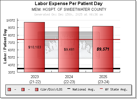Changes in acuity are nearly always reflected in both "Length of Stay" (sicker patients tend to stay longer) and "Labor per Discharge" (sicker patients require more labor per day). Therefore, dividing the "Labor per Discharge" by the "Length of Stay", produces a scalable measure that truly captures an organization's change in labor utilization (against volumes) over time. The measure is "automatically" acuity adjusted and tells a far more detailed story than any other single risk factor (See section above).