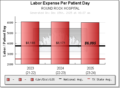 Changes in acuity are nearly always reflected in both "Length of Stay" (sicker patients tend to stay longer) and "Labor per Discharge" (sicker patients require more labor per day). Therefore, dividing the "Labor per Discharge" by the "Length of Stay", produces a scalable measure that truly captures an organization's change in labor utilization (against volumes) over time. The measure is "automatically" acuity adjusted and tells a far more detailed story than any other single risk factor (See section above).