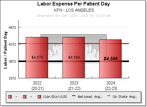 Changes in acuity are nearly always reflected in both "Length of Stay" (sicker patients tend to stay longer) and "Labor per Discharge" (sicker patients require more labor per day). Therefore, dividing the "Labor per Discharge" by the "Length of Stay", produces a scalable measure that truly captures an organization's change in labor utilization (against volumes) over time. The measure is "automatically" acuity adjusted and tells a far more detailed story than any other single risk factor (See section above).