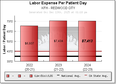 Changes in acuity are nearly always reflected in both "Length of Stay" (sicker patients tend to stay longer) and "Labor per Discharge" (sicker patients require more labor per day). Therefore, dividing the "Labor per Discharge" by the "Length of Stay", produces a scalable measure that truly captures an organization's change in labor utilization (against volumes) over time. The measure is "automatically" acuity adjusted and tells a far more detailed story than any other single risk factor (See section above).