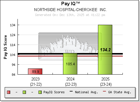 The Pay IQ ® is the measure of labor efficiency of a hospital. It is calculated using an algorithm that incorporates financial data from publicly available sources. The algorithm is designed to evaluate labor utilization in a manner that accounts for differences in reimbursement and cost of living for each distinct institution. Based upon the results derived from labor spending, the algorithm determines the "Labor intelligence" level of each hospital and assigns their personal Pay IQ ®. Pay IQ's range from 80 (challenged) to 140 (genius) and are a valid indicator of the effective use of labor spending.