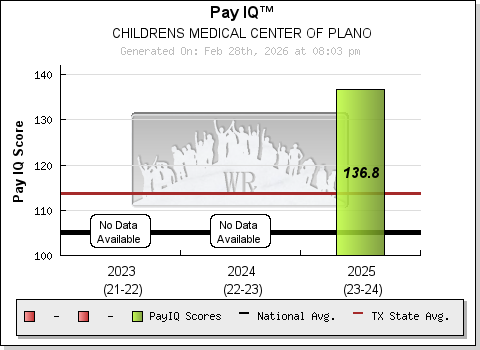 The Pay IQ ® is the measure of labor efficiency of a hospital. It is calculated using an algorithm that incorporates financial data from publicly available sources. The algorithm is designed to evaluate labor utilization in a manner that accounts for differences in reimbursement and cost of living for each distinct institution. Based upon the results derived from labor spending, the algorithm determines the "Labor intelligence" level of each hospital and assigns their personal Pay IQ ®. Pay IQ's range from 80 (challenged) to 140 (genius) and are a valid indicator of the effective use of labor spending.