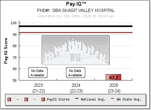 The Pay IQ ® is the measure of labor efficiency of a hospital. It is calculated using an algorithm that incorporates financial data from publicly available sources. The algorithm is designed to evaluate labor utilization in a manner that accounts for differences in reimbursement and cost of living for each distinct institution. Based upon the results derived from labor spending, the algorithm determines the "Labor intelligence" level of each hospital and assigns their personal Pay IQ ®. Pay IQ's range from 80 (challenged) to 140 (genius) and are a valid indicator of the effective use of labor spending.