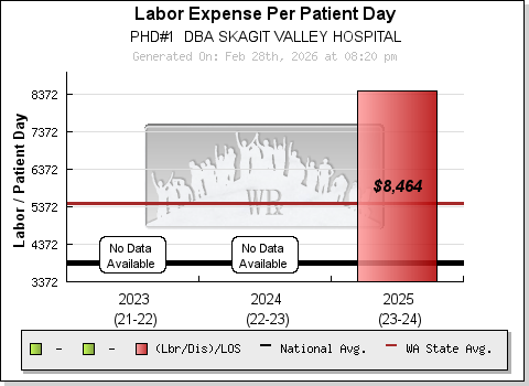 Changes in acuity are nearly always reflected in both "Length of Stay" (sicker patients tend to stay longer) and "Labor per Discharge" (sicker patients require more labor per day). Therefore, dividing the "Labor per Discharge" by the "Length of Stay", produces a scalable measure that truly captures an organization's change in labor utilization (against volumes) over time. The measure is "automatically" acuity adjusted and tells a far more detailed story than any other single risk factor (See section above).